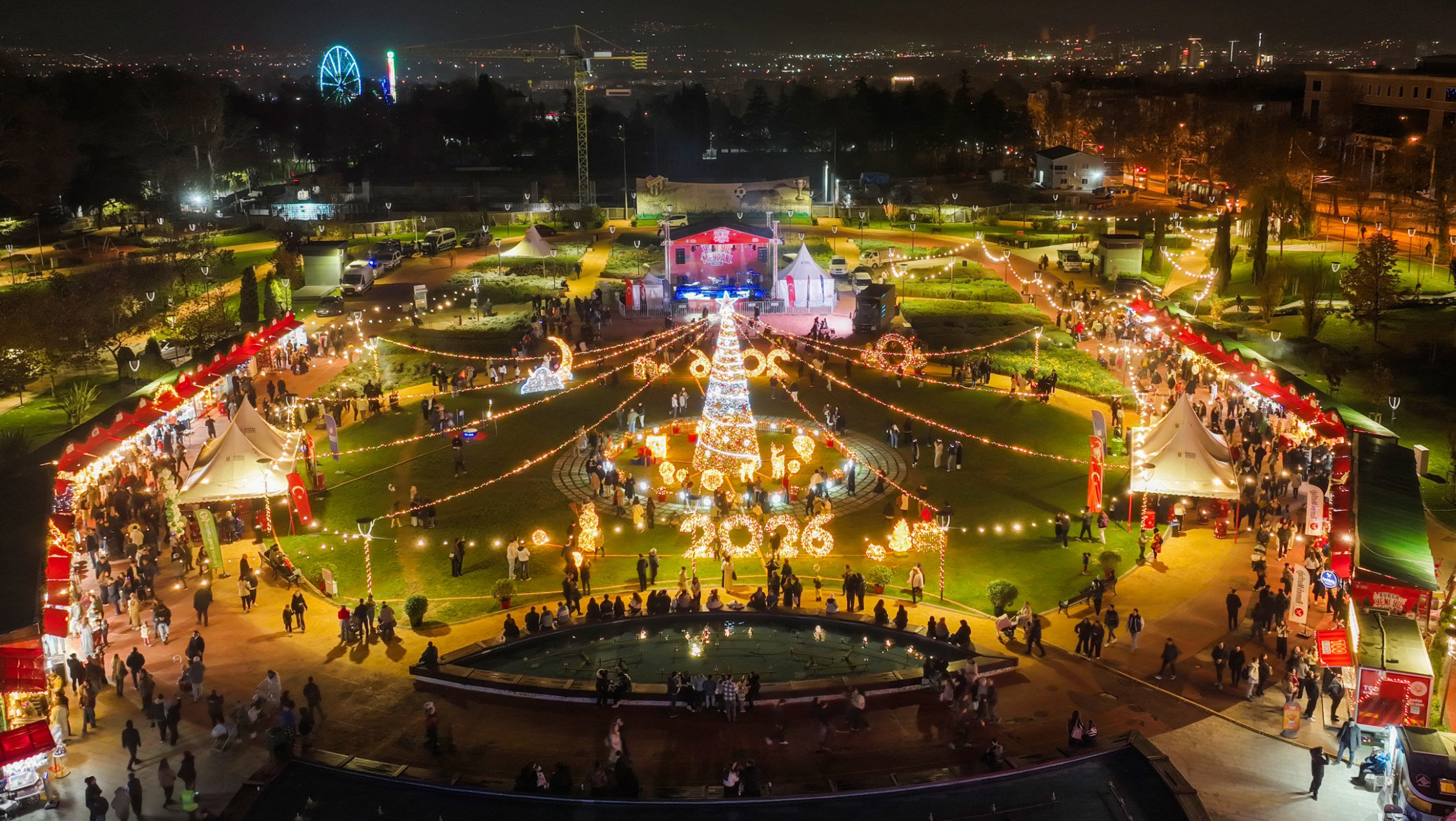 Bursa Millet Bahçesi’nde düzenlenen ‘Bursa Yeni Yıl Meydanı’, kurumsal iştiraklerden Bursa Kültür A.Ş. organizasyonuyla gerçekleştiriliyor.